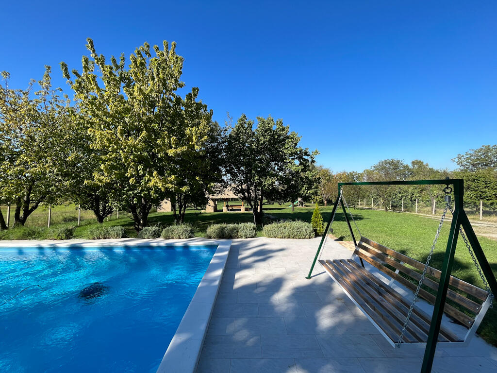 Bazen dimenzija 8m x 4m, dubine 1.4m, sa slanom vodom, pogodan je kako za uživanje i rashlađivanje tokom toplih dana, tako i za rekreativno plivanje i trening.Na raspolaganju su razni pištolji na vodu i lopte za zabavu u i oko bazena.